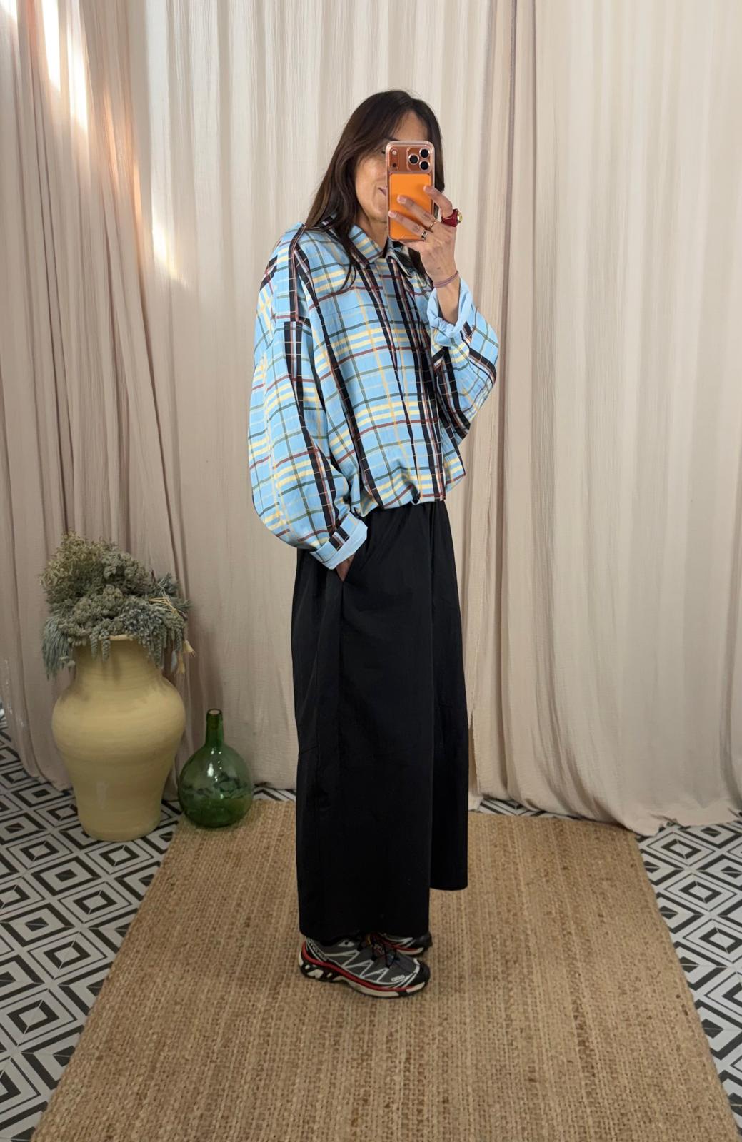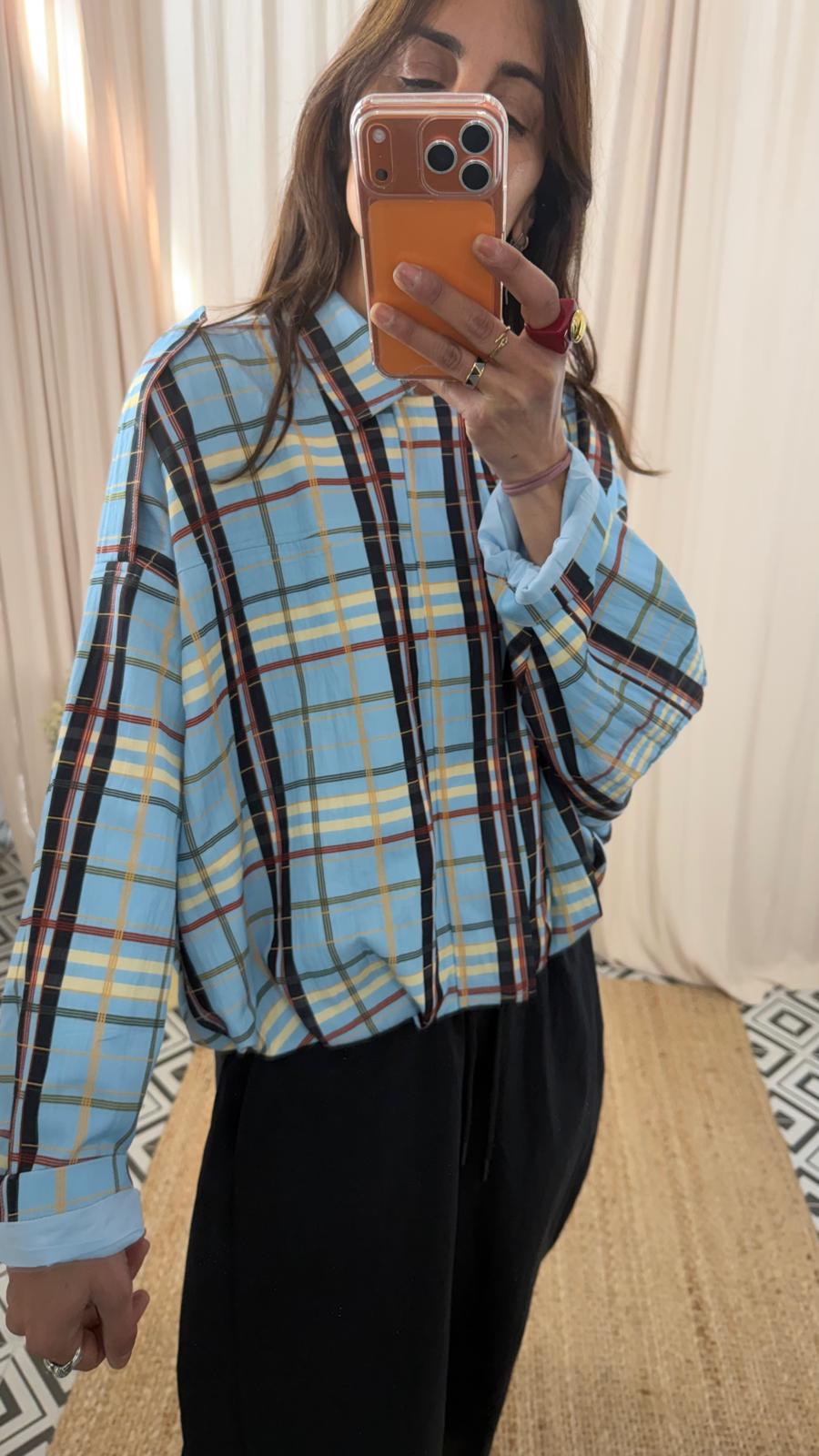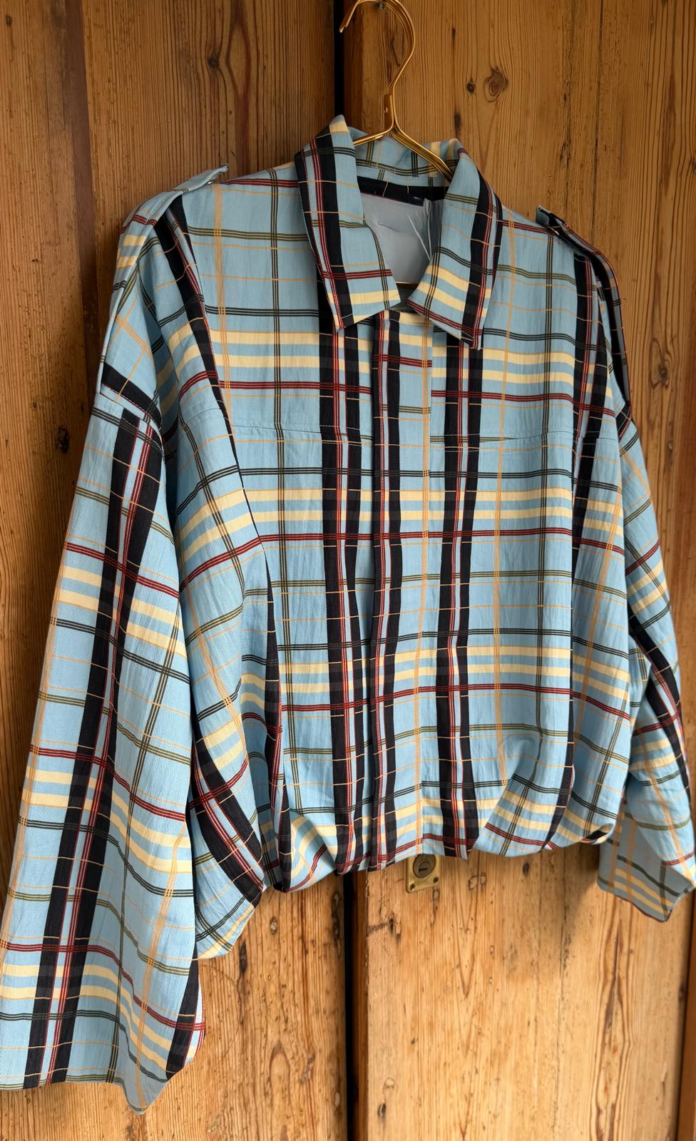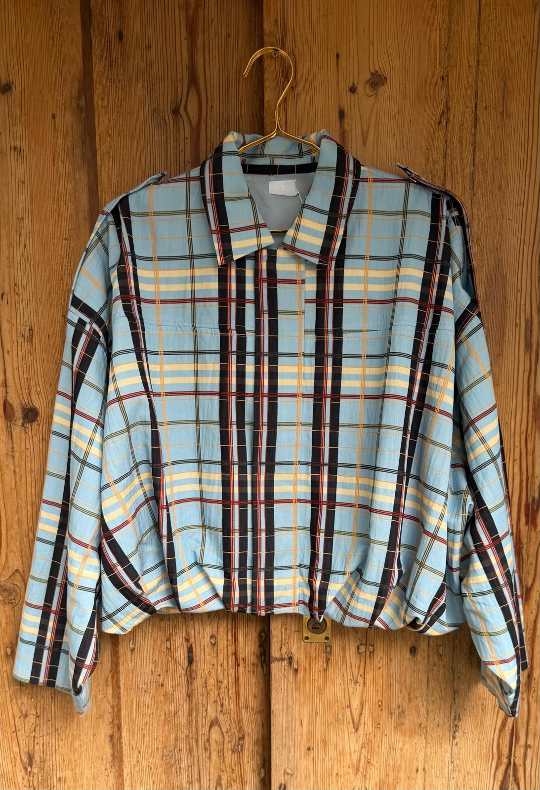 Bomber con estampado a cuadros. Corte relajado y cuello camisero clásico. Mangas ligeramente abullonadas. Bajo abullonado.
