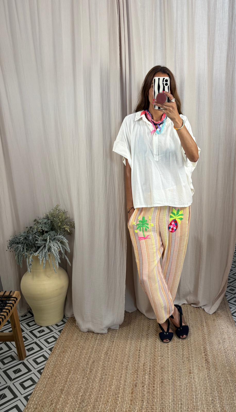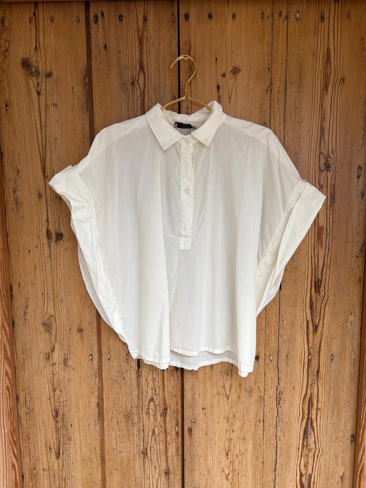 Camisa oversize con manga ranglan y dobladillo. Corte amplio y cómodo. Tejido liviano.