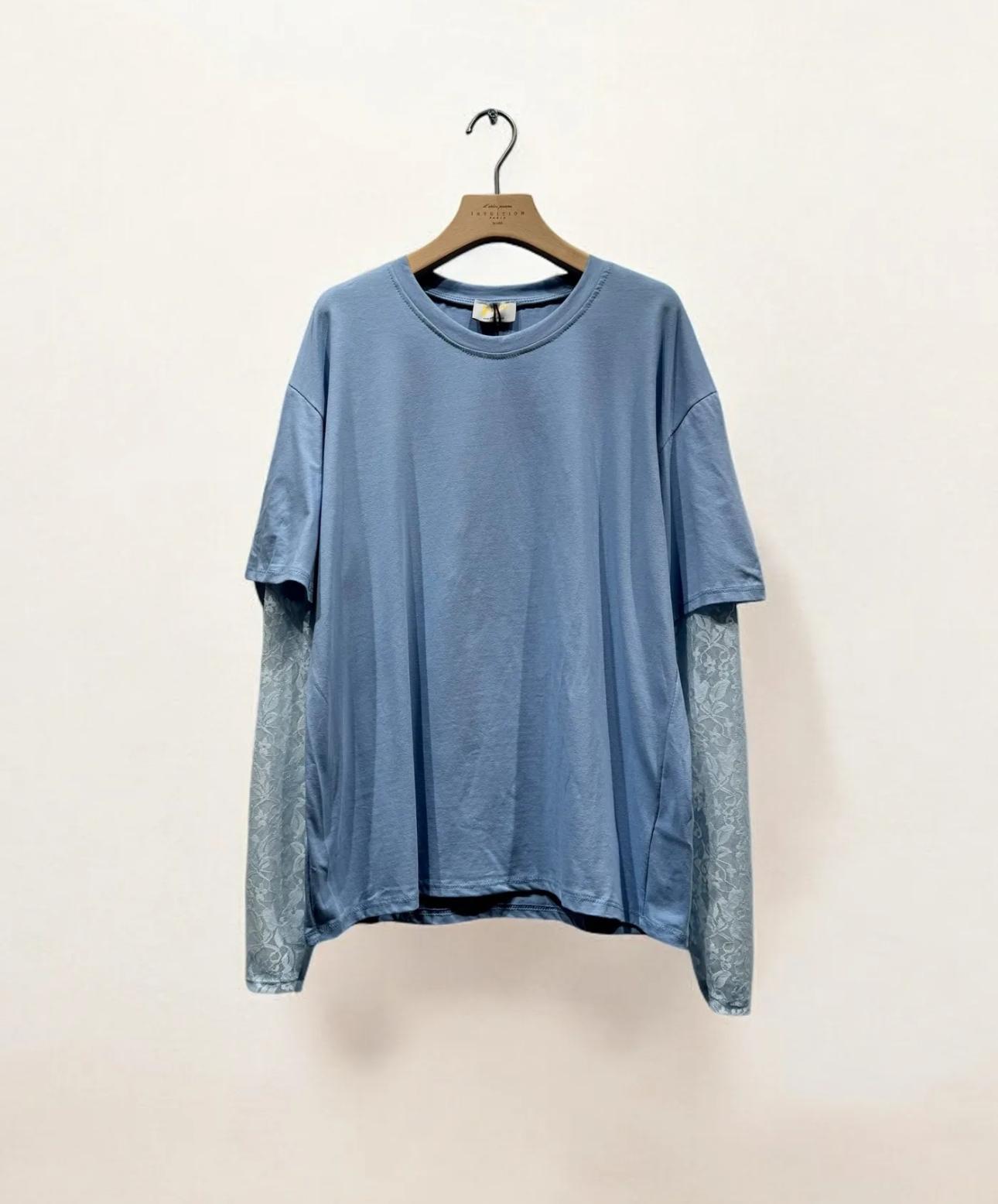 Camiseta holgada de manga corta con capa de manga larga debajo en un sutil encaje.