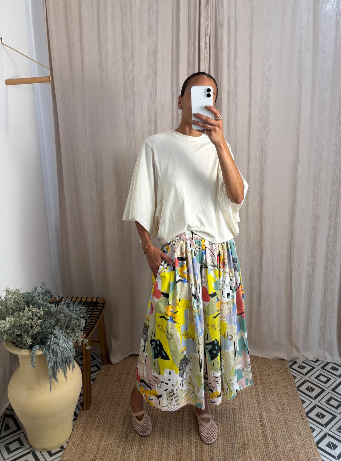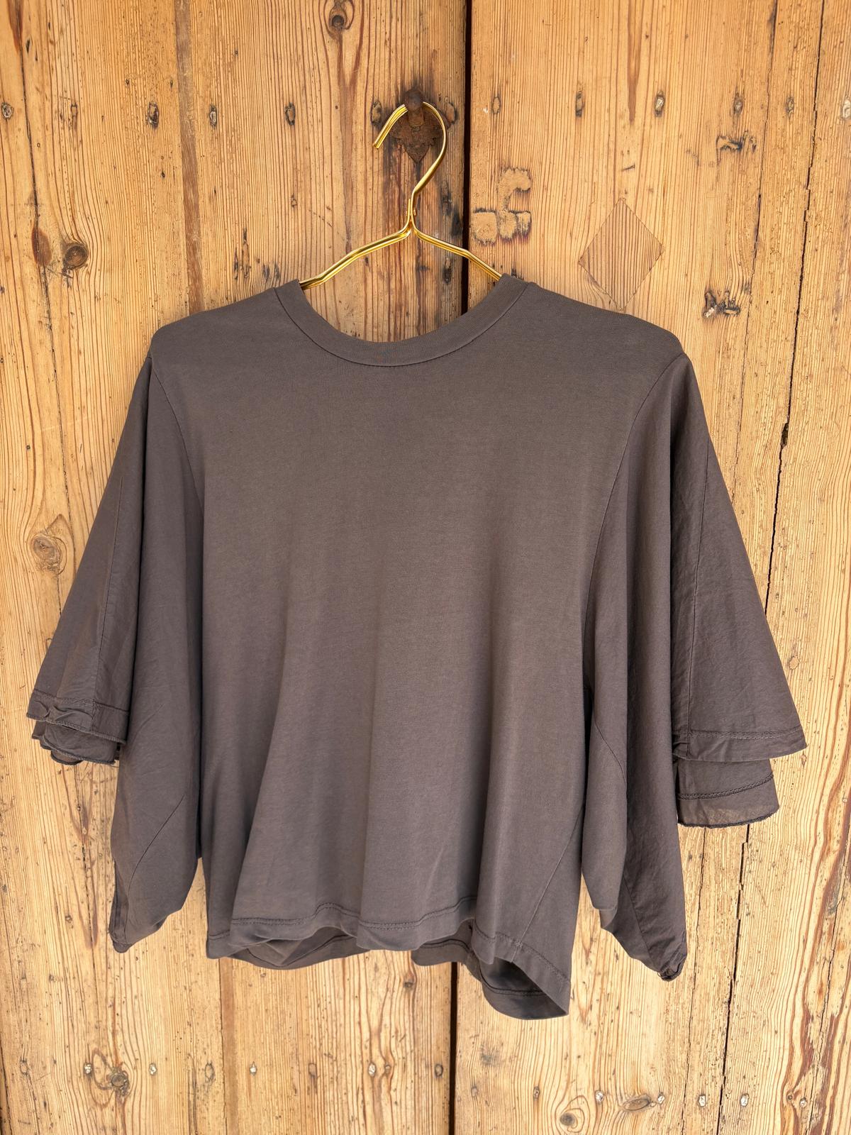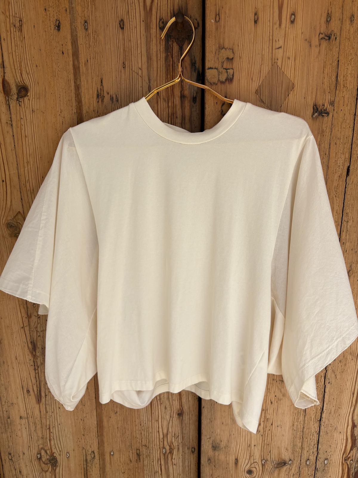 Camiseta con manga caída estilo murciélago. Tejido ligero, cuello redondo clásico y enfoque minimalista. Disponible en varios colores.