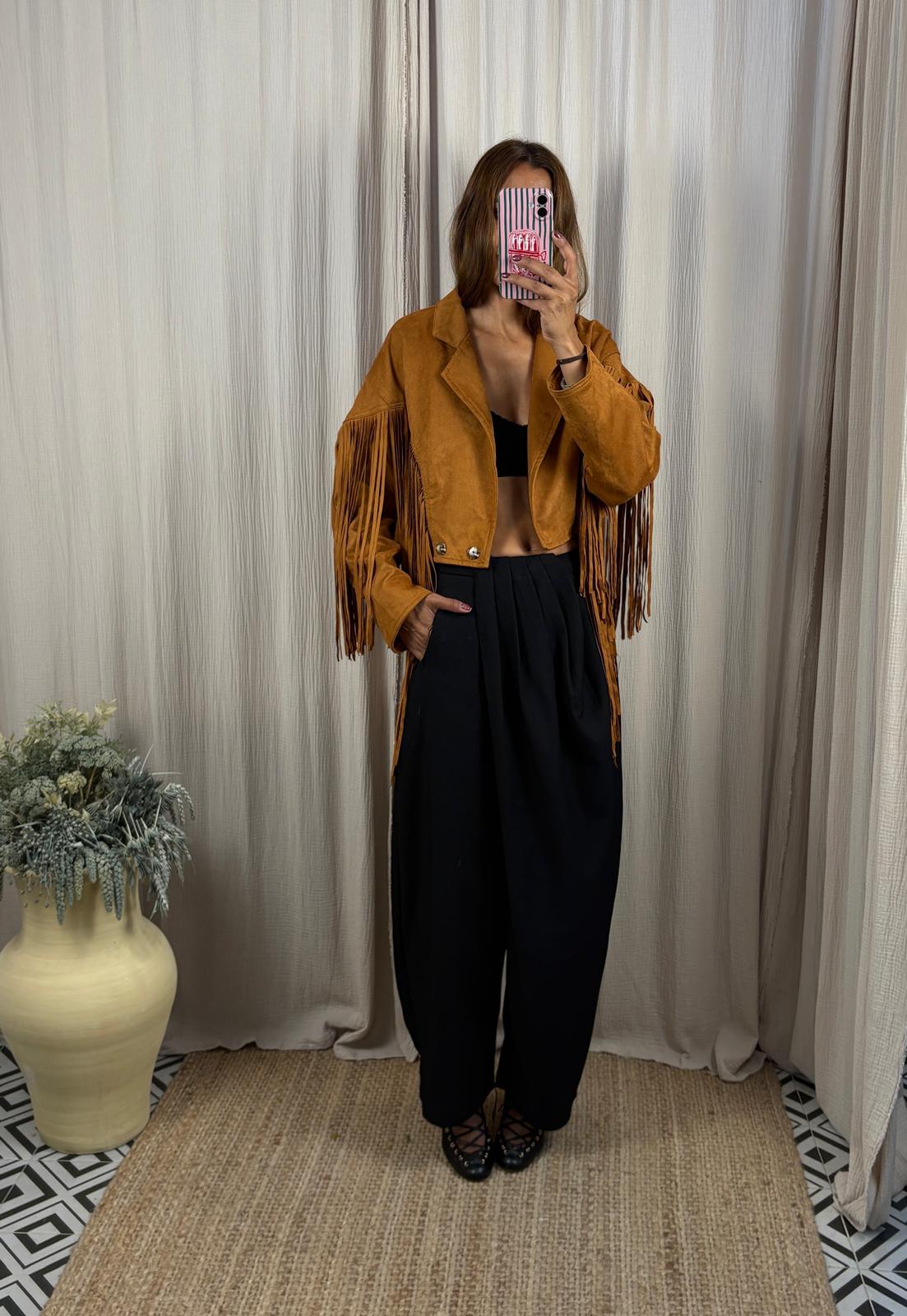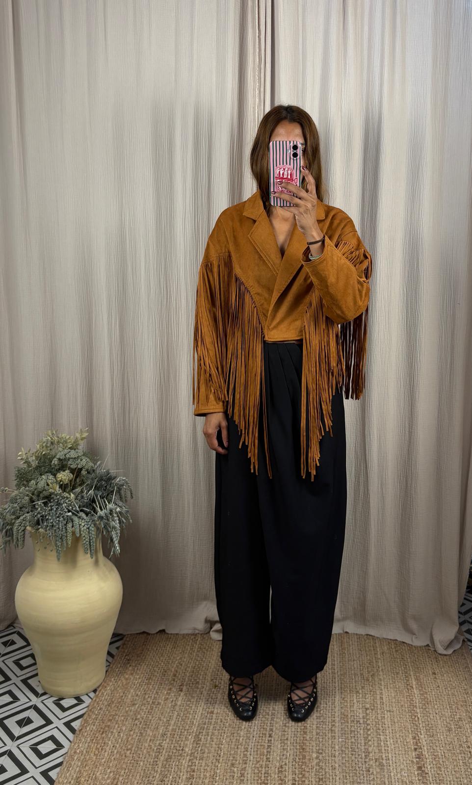 Chaqueta flecos cropped