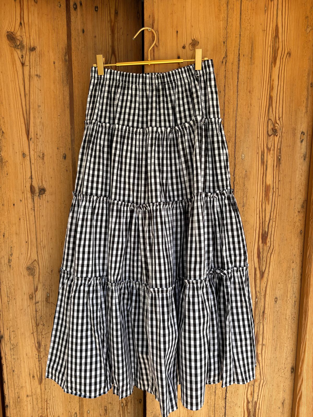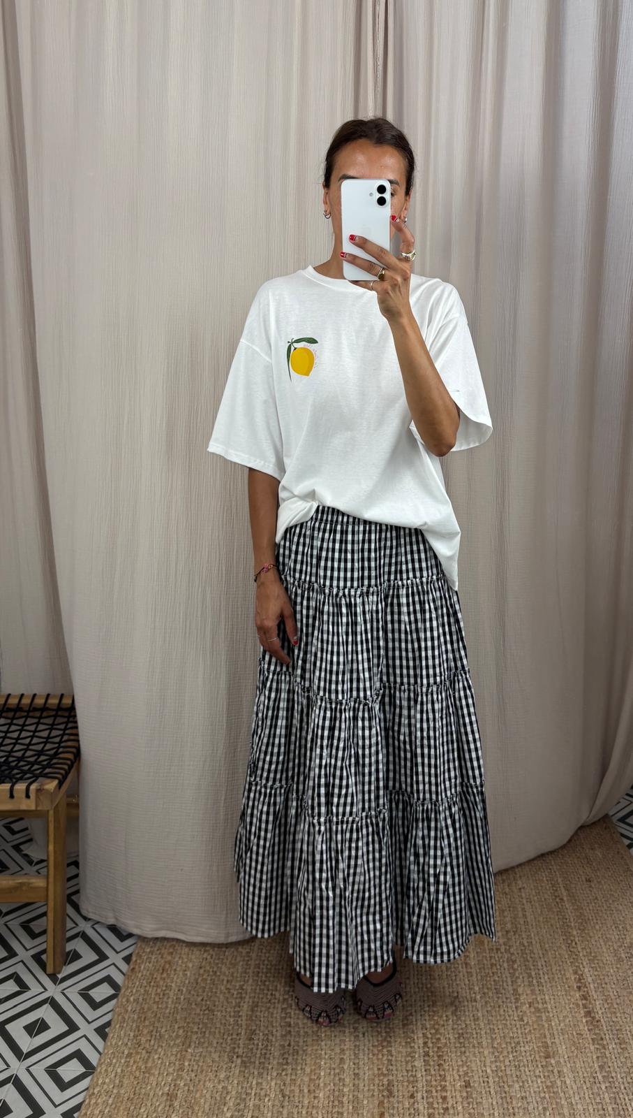 Falda larga confeccionada en tela de cuadros vichy, cintura elástica. Perfecta para looks casuales