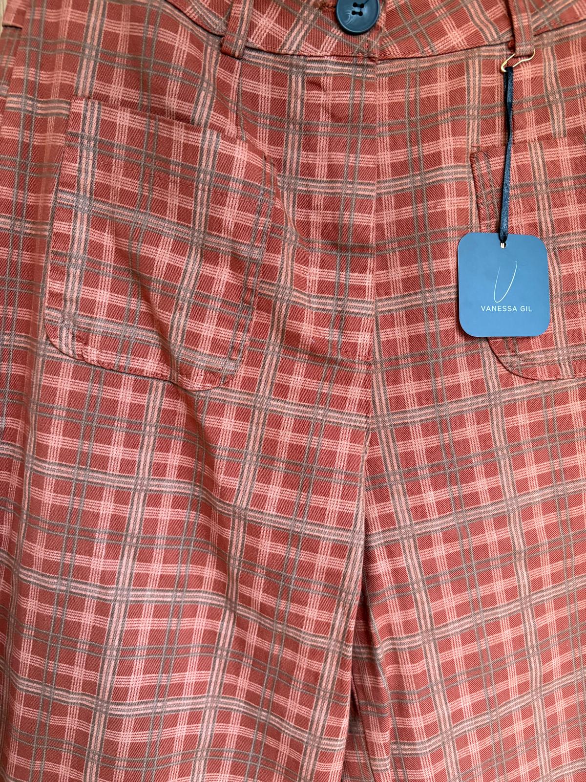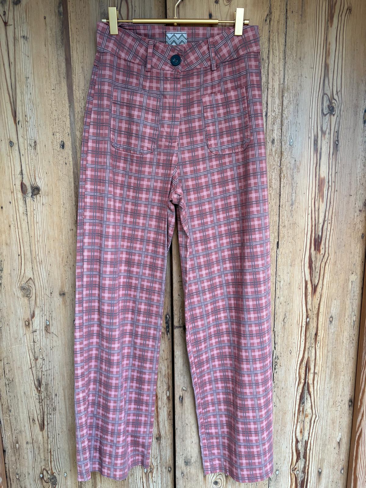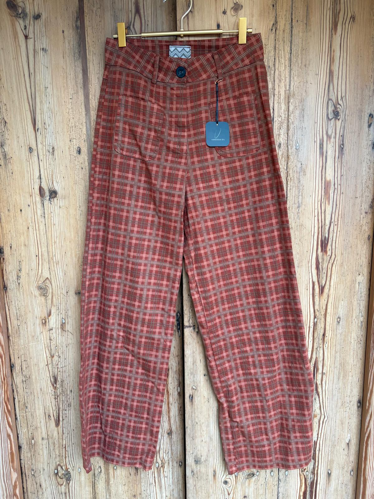 Jeans de cuadros con bolsillos delanteros. Corte recto.