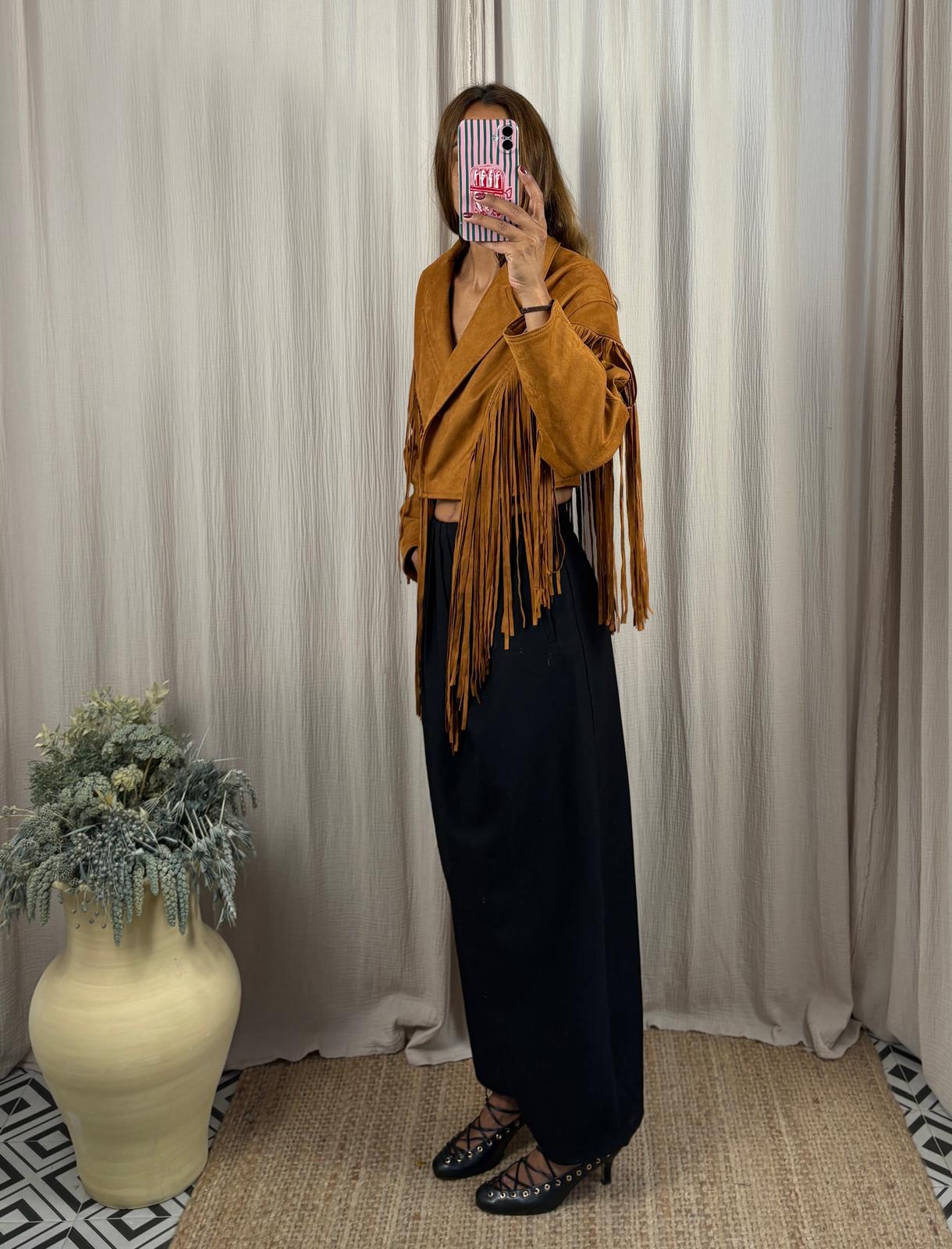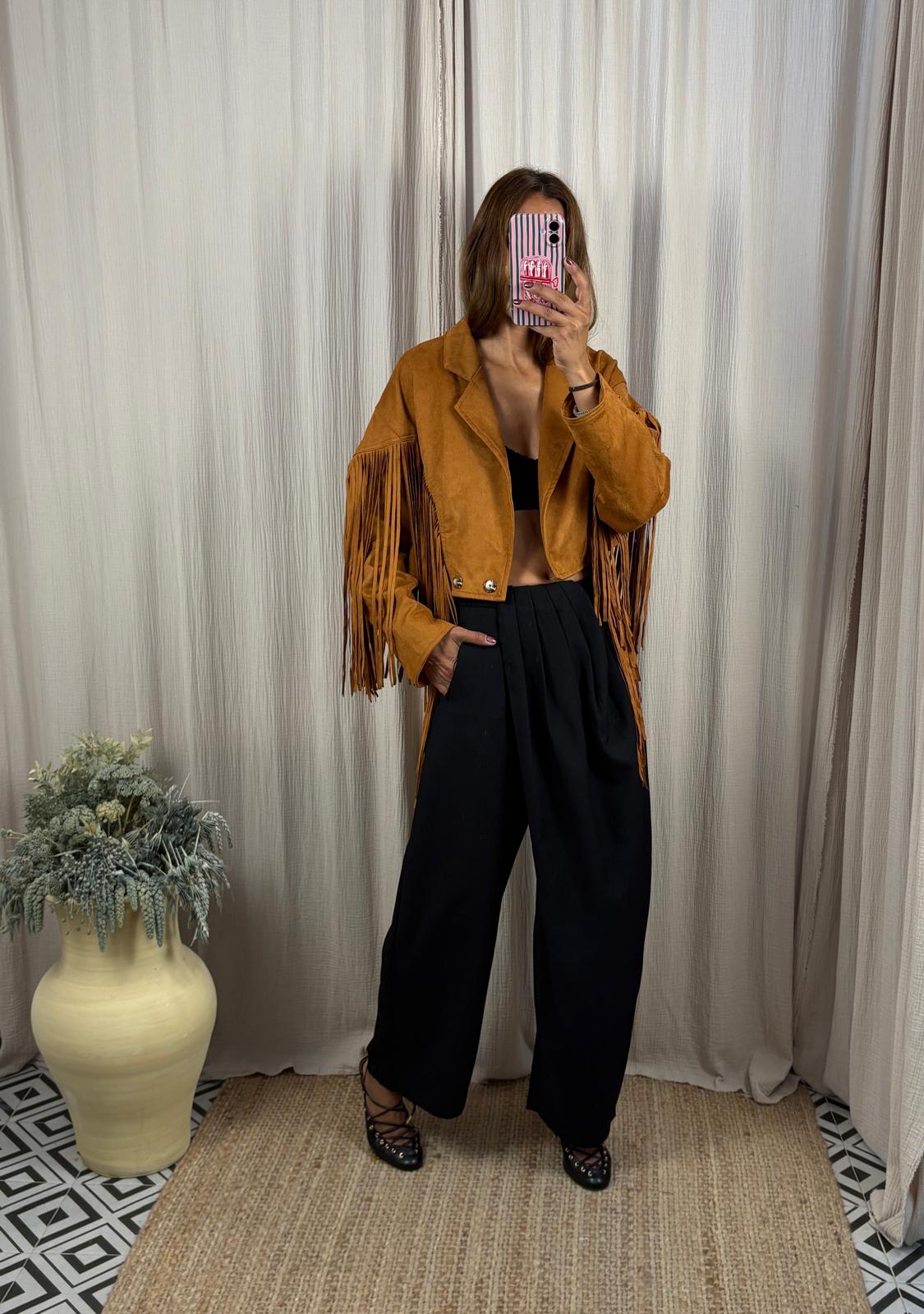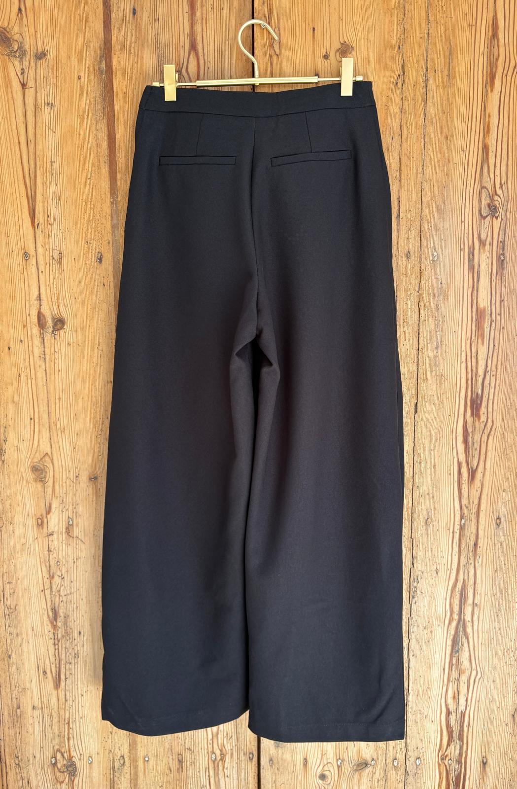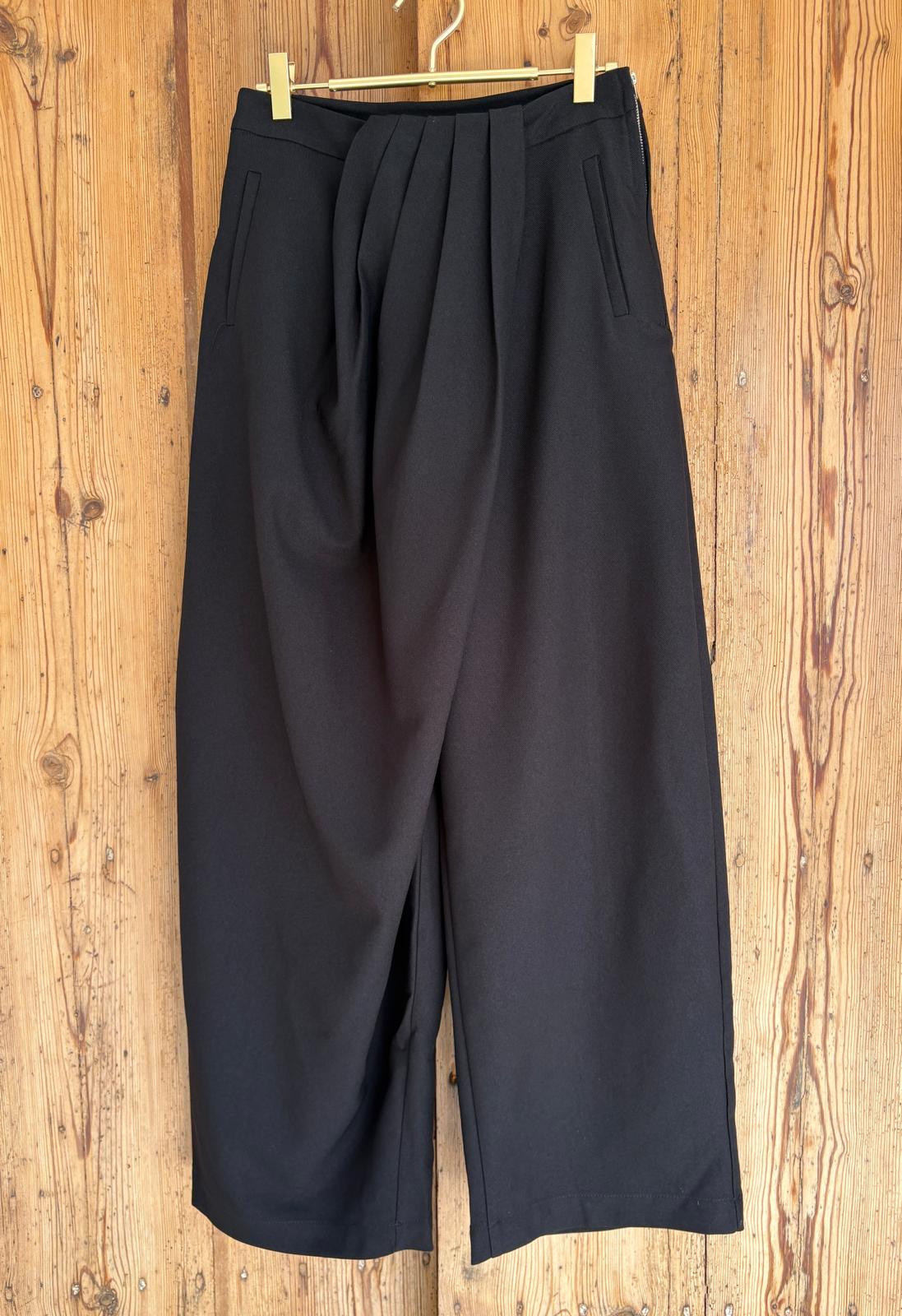 Pantalón recto de corte. Tiene pliegues frontales que aportan originalidad y elegancia. Con caída suelta que estiliza la figura. Un fondo de armario muy versátil.