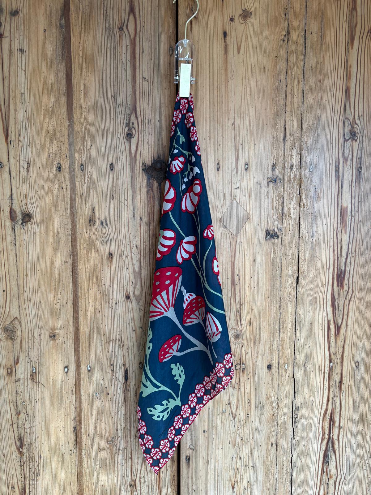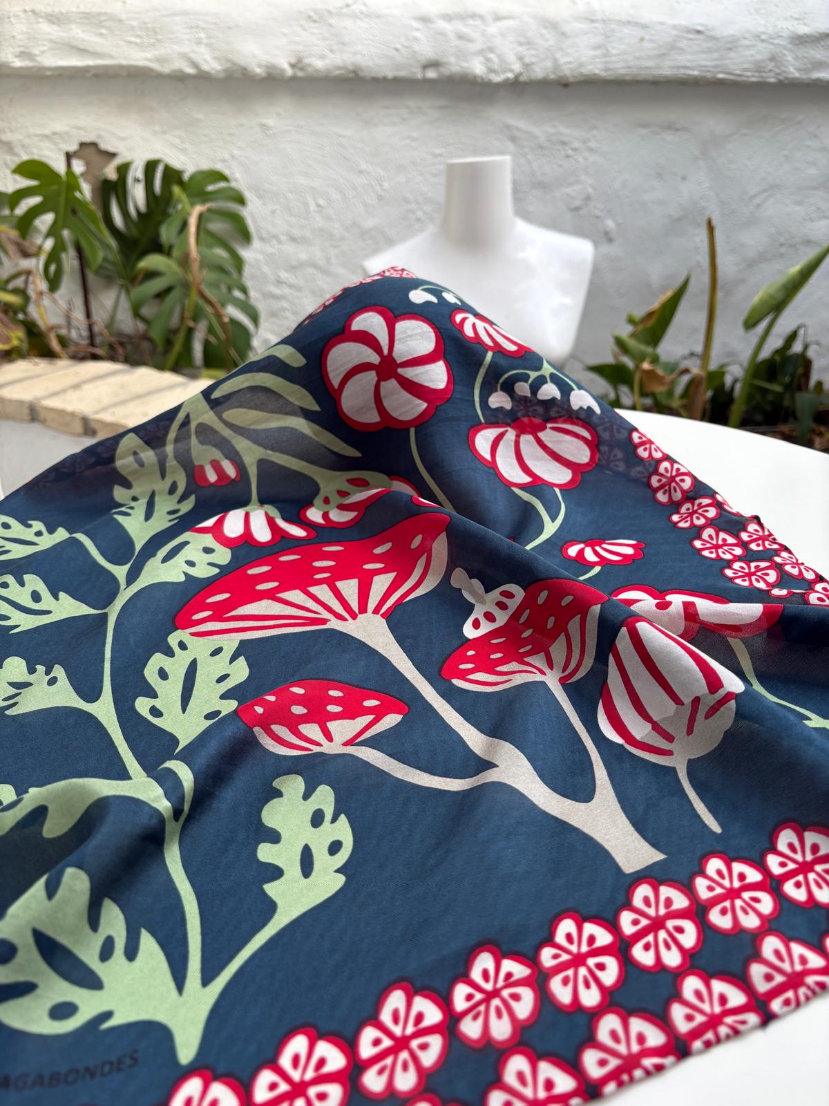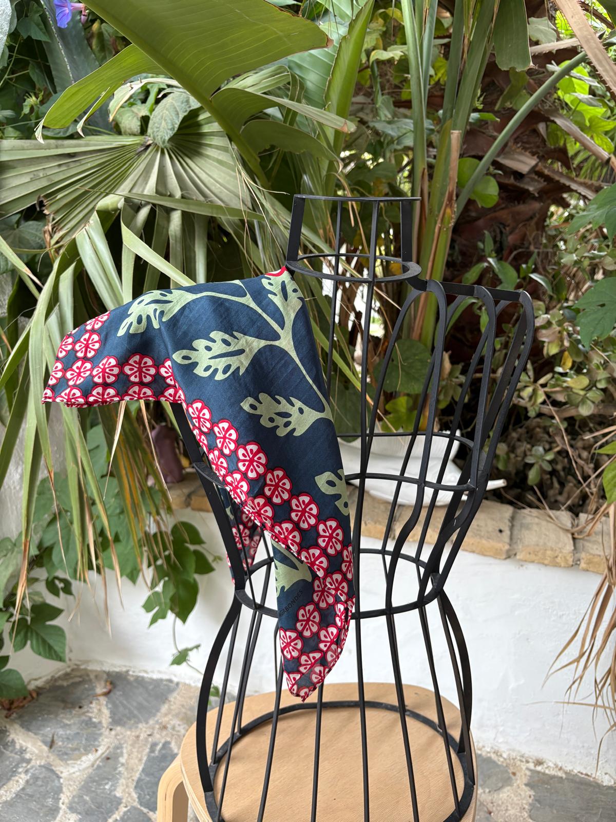 Los mini pañuelos de seda son un regalo original, se pueden llevar en el cuello, alrededor de la muñeca, como diadema, en un moño o alrededor del bolso. Impreso a mano en la India. 50 x 50 cm.