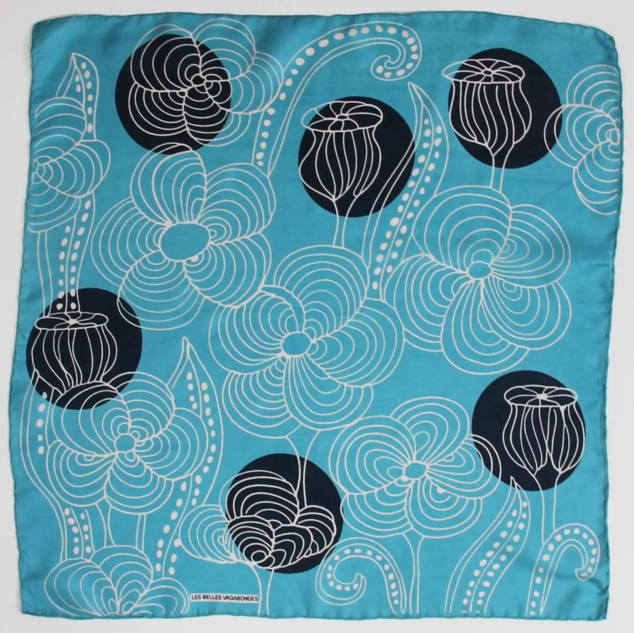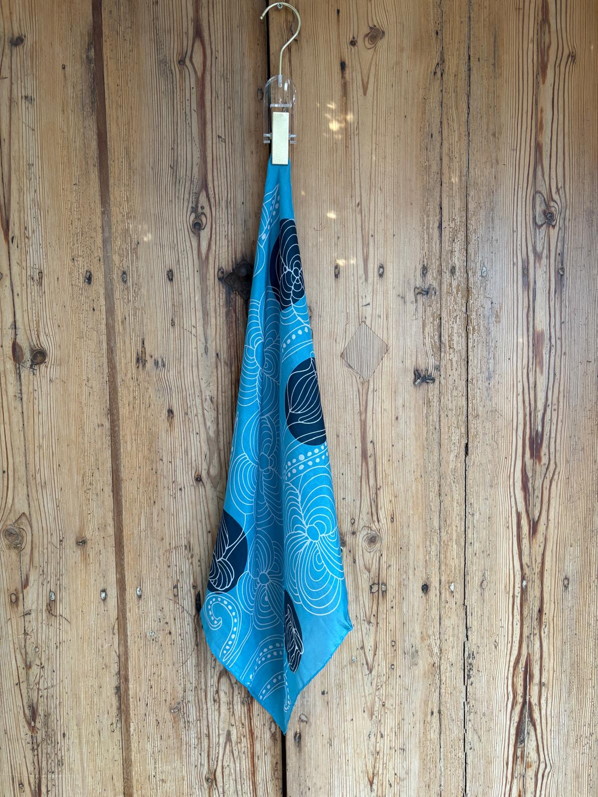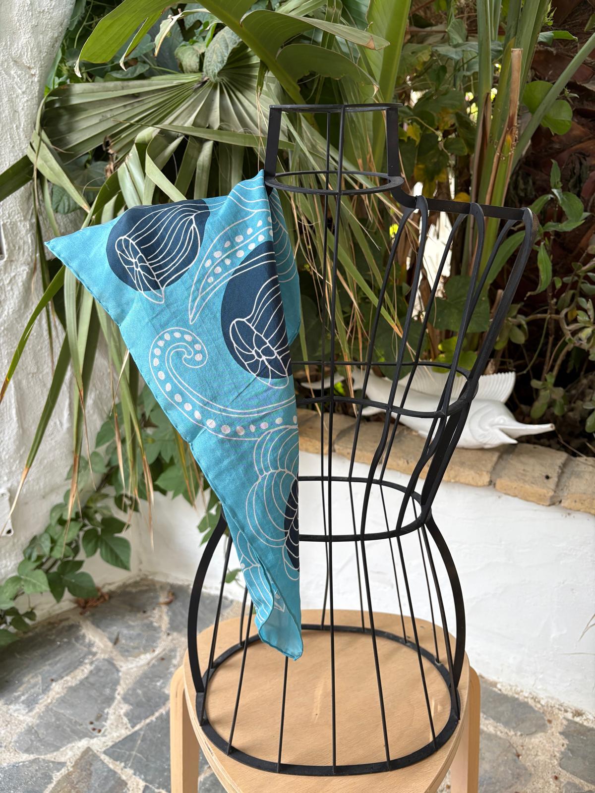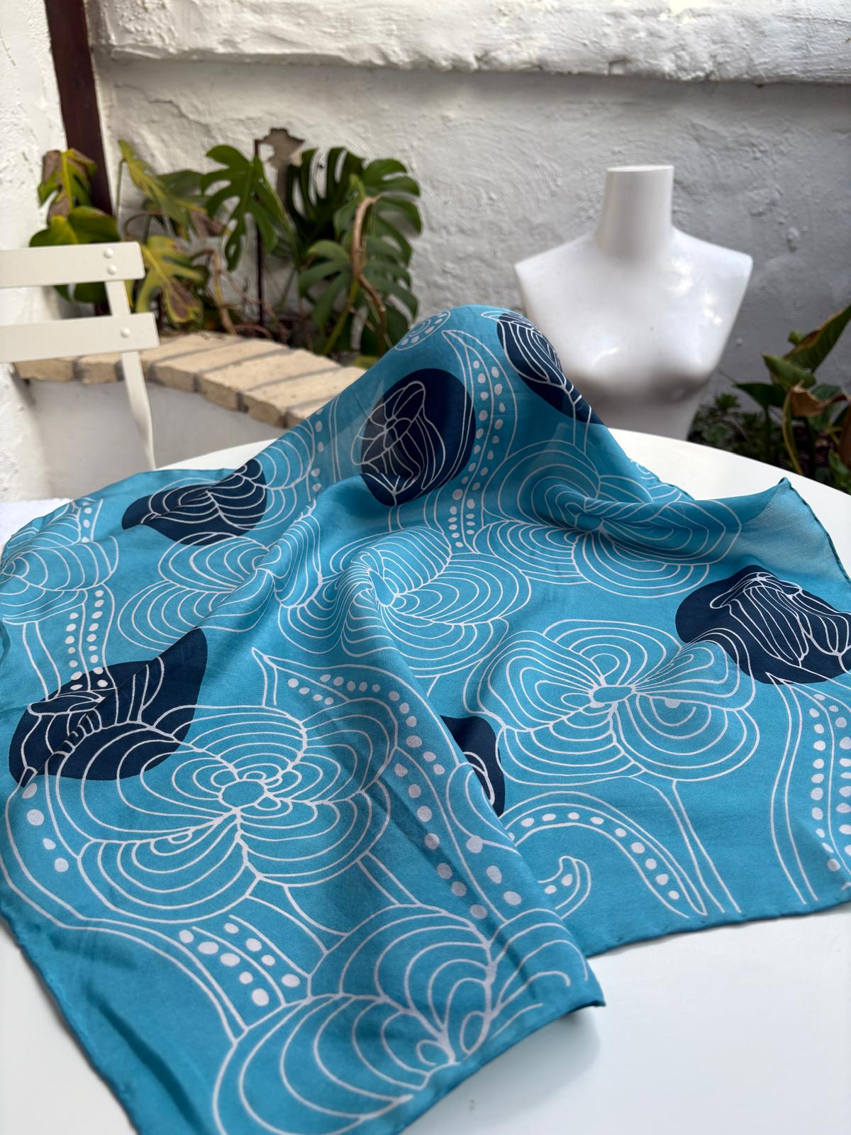 Los mini pañuelos de seda son un regalo original, se pueden llevar en el cuello, alrededor de la muñeca, como diadema, en un moño o alrededor del bolso. Impreso a mano en la India. 50 x 50 cm.