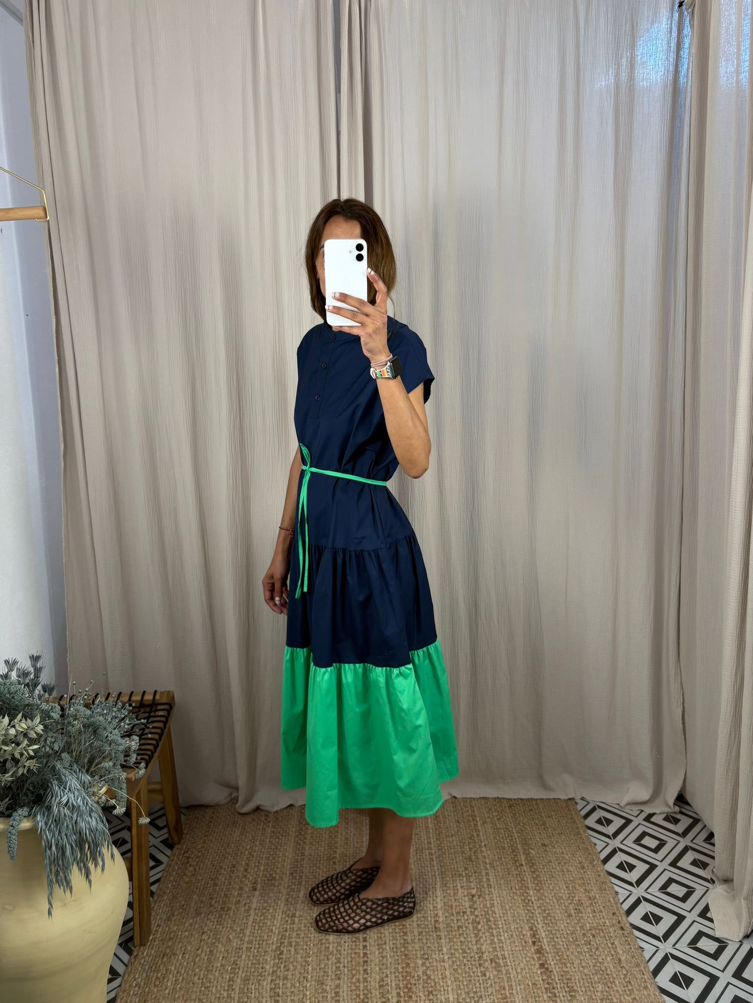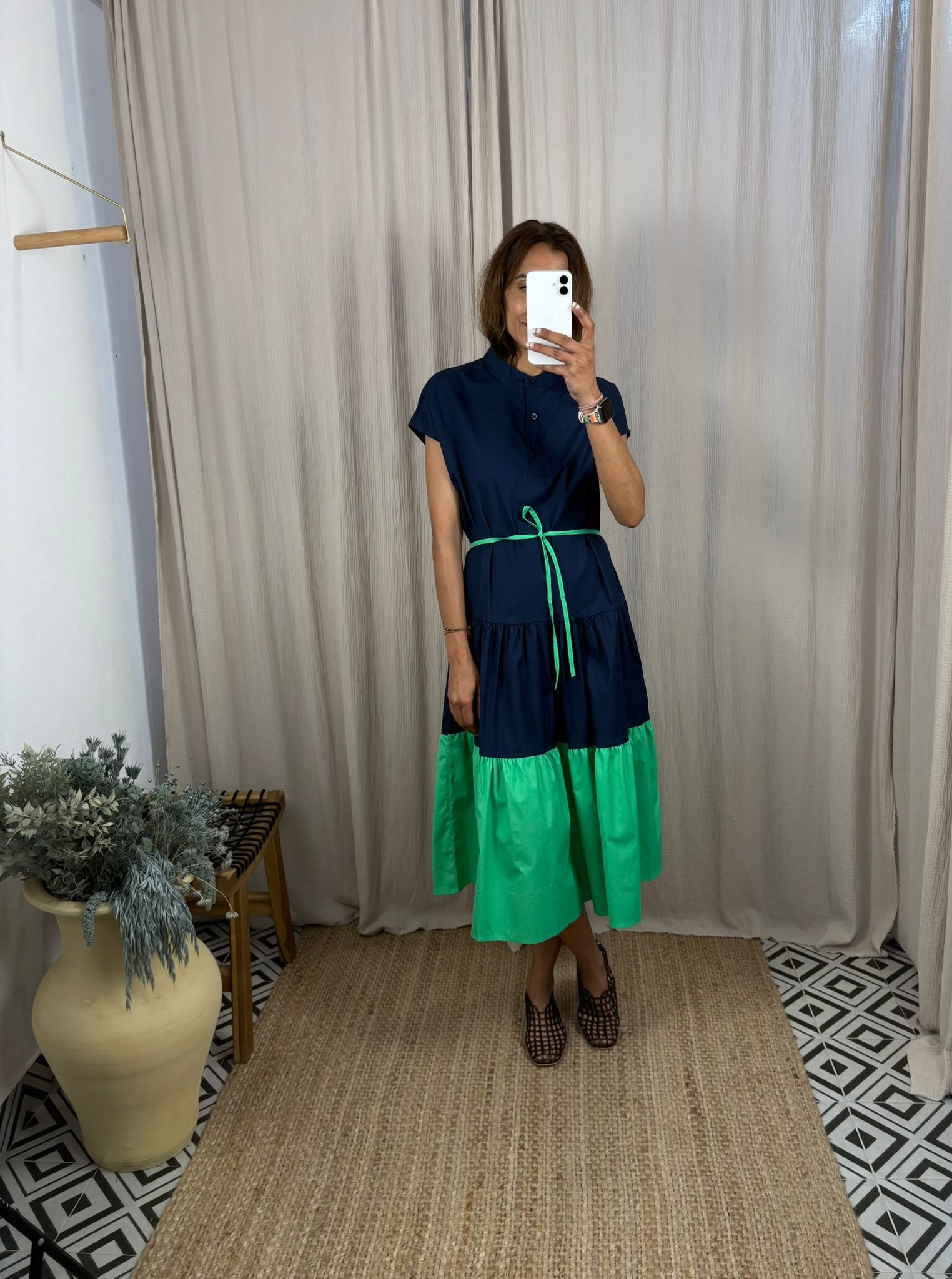 Vestido midi bicolor